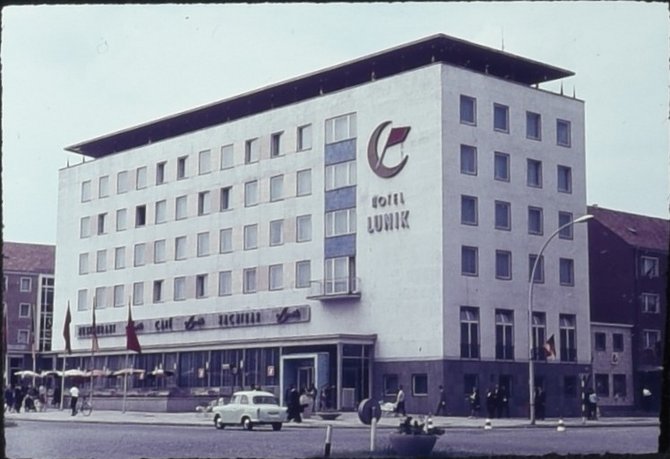 Das Hotel Lunik wurde zwischen 1960 und 1963 nach Entwürfen von Willy Stamm errichtet. Es ist ein Skelettbau aus Stahlbeton, nur der Anbau mit Küche und Café wurde klassisch gemauert.